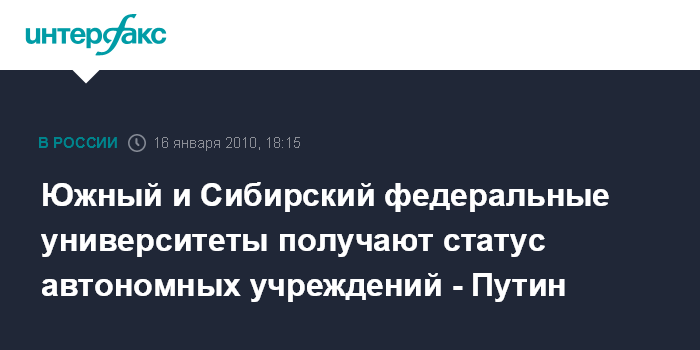 Южный и Сибирский федеральные университеты получают статус автономных учреждений - Путин