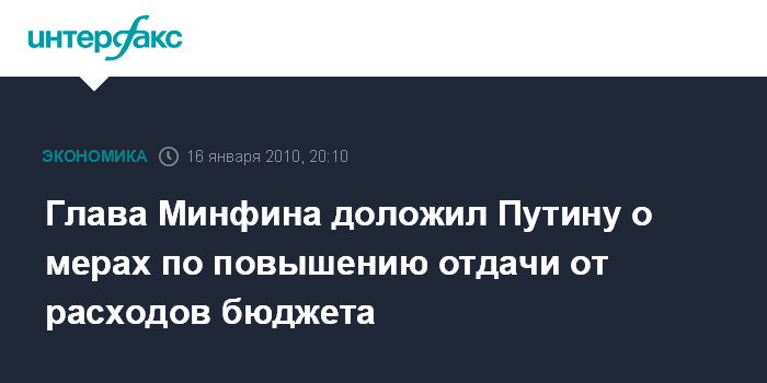 Глава Минфина доложил Путину о мерах по повышению отдачи от расходов бюджета