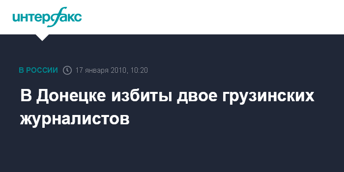 Тбилиси. 17 января. INTERFAX.RU - Двое грузинских журналистов из телекомпании "Имеди" Зураб Хвистани и Ираклий Гварамадзе в ночь на воскресенье были избиты неизвестными у гостиницы в Донецке. З.Хвистани сообщил утром в воскресенье телекомпании "Имеди", что вечером в субботу его и И.Гварамадзе не пустили в предвыборный штаб кандидата в президенты Виктора Януковича. "После этого несколько молодых людей сопроводили нас до гостиницы, и у ее входа начали избивать", - утверждает З.Хвистани. По его словам, журналисты обратились за помощью в местную больницу.