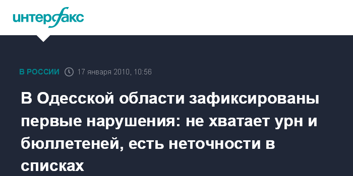 "Урн не хватает на 61-ом участке 135 округа, где вместо 4 больших и трех переносных урн есть только три больших и две переносные урны. Такая проблема существует во многих округах. Кроме того, мы фиксируем неточности в списках избирателей, недостаток бюллетеней для голосования и ряд других нарушений", - сообщил руководитель Одесского областного КИУ Анатолий Бойко.