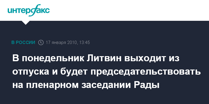 В понедельник Литвин выходит из отпуска и будет председательствовать на пленарном заседании Рады