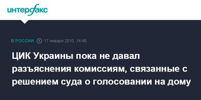Она отметила, что ЦИК пока не выработал общей позиции по данному вопросу и не дал никаких разъяснений для окружных и участковых избирательных комиссий. Ж.Усенко-Черная также сообщила, что председатель ЦИК Владимир Шаповал назначил рабочее совещание комиссии на 14:00 (по местному времени). Она не исключила, что на этом совещании будут рассмотрены вопросы о судебных решениях, которые касаются голосования на дому, внесения избирателей в списки для голосования в день выборов, а также о регистрации грузинских наблюдателей.