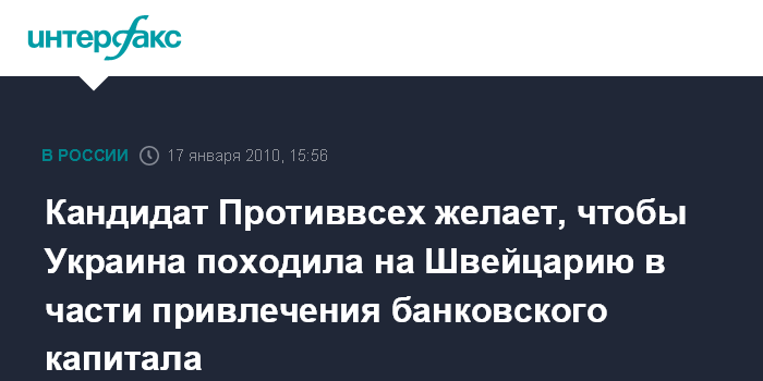 Кандидат Противвсех желает, чтобы Украина походила на Швейцарию в части привлечения банковского капитала