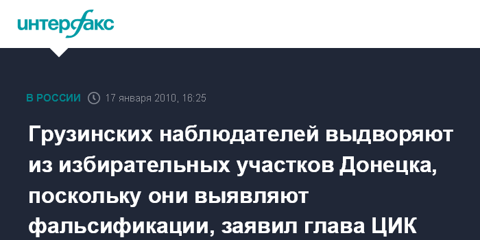Грузинских наблюдателей выдворяют из избирательных участков Донецка, поскольку они выявляют фальсификации, заявил глава ЦИК Грузии