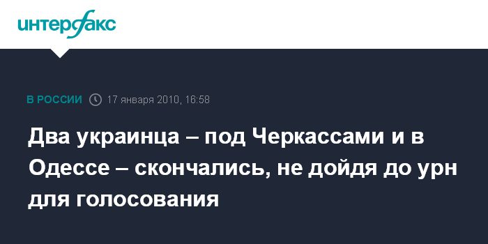Киев/Одесса. 17 января. INTERFAX.RU - Два ЧП с трагическим исходом отмечены в день голосования на Украине.