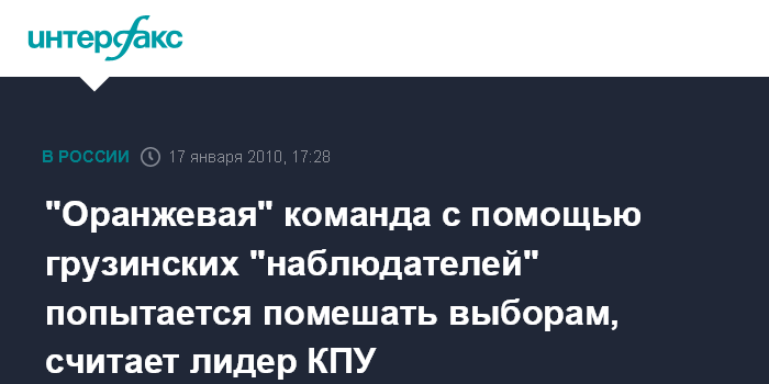 По его мнению, привлечение к участию в президентских выборах на Украине грузинских наблюдателей свидетельствует о том, что "продолжается сотрудничество "цветных" президентов". "Это явный факт, который свидетельствует о том, что продолжается сотрудничество "цветных" президентов, которые приходили к власти, благодаря тому, что реализовывалась американская схема "цветных революций". Саакашвили, как и Ющенко, из одного и того же гнезда, и пытаются такими методами помочь друг другу в борьбе за власть, чтобы и в дальнейшем на территории Украины доминировала американская составляющая внешней политики", - убежден лидер КПУ.