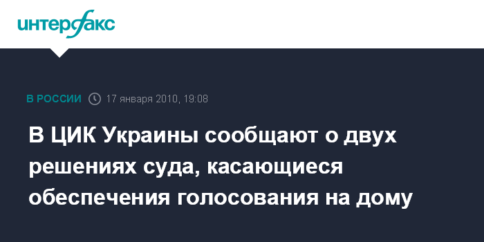 В ЦИК Украины сообщают о двух решениях суда, касающиеся обеспечения голосования на дому