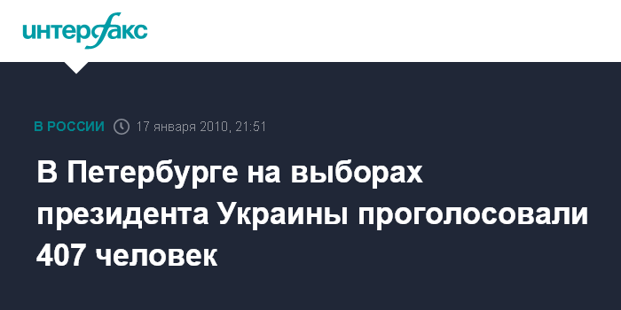 Санкт-Петербург. 17 января. INTERFAX.RU - На избирательном участке в генеральном консульстве Украины в Петербурге проголосовали более 400 человек, сообщили "Интерфаксу" в дипмиссии воскресенье вечером.