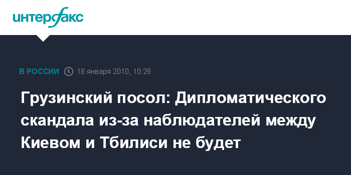 Москва. 18 января. INTERFAX.RU – Конфликт, связанный с отказом украинского ЦИК зарегистрировать наблюдателей из Грузии, не перерастет в дипломатический скандал, заявил грузинский посол на Украине Григол Катамадзе на пресс-конференции в Киеве.