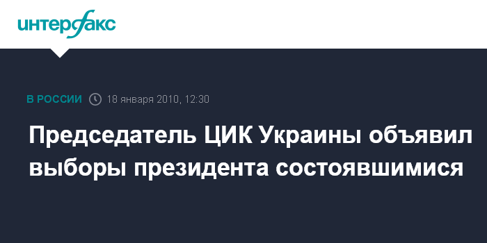 Москва. 18 января. INTERFAX.RU – Выборы президента Украины состоялись, заявил председатель Центральной избирательной комиссии Владимир Шаповал.