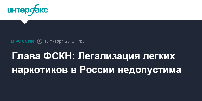 Москва. 18 января. INTERFAX.RU – Марихуана и другие легкие наркотики не будут легализованы в России, убежден глава Федеральной службы по контролю за незаконным оборотом наркотиков (ФСКН) Виктор Иванов.