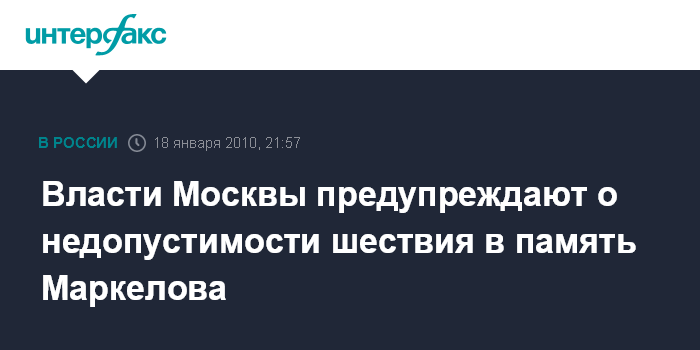 Власти Москвы предупреждают о недопустимости шествия в память Маркелова