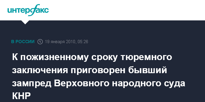 К пожизненному сроку тюремного заключения приговорен бывший зампред Верховного народного суда КНР