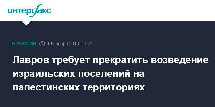 Лавров требует прекратить возведение израильских поселений на палестинских территориях