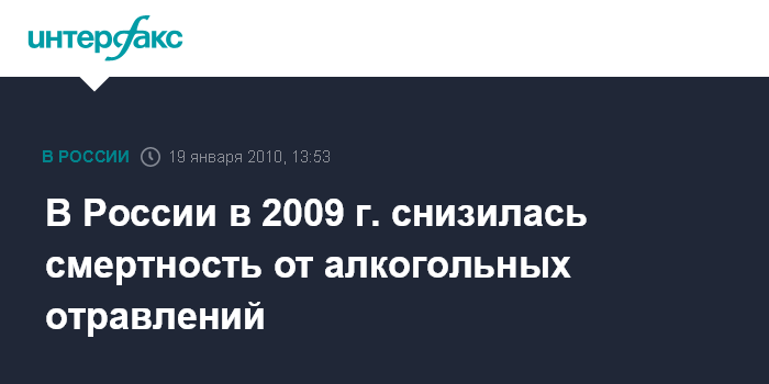 В России в 2009 г. снизилась смертность от алкогольных отравлений
