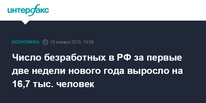 Число безработных в РФ за первые две недели нового года выросло на 16,7 тыс. человек