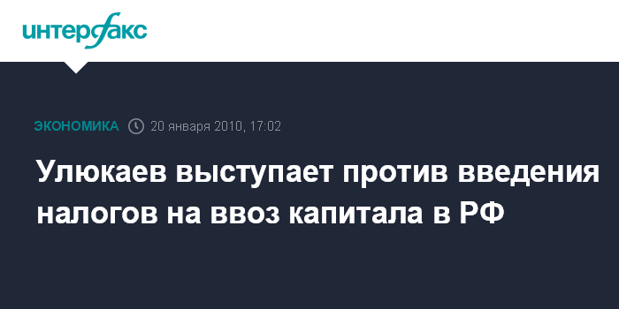 Москва. 20 января. INTERFAX.RU - Первый зампред ЦБ РФ Алексей Улюкаев выступает против налогов на ввоз капитала в РФ. В беседе в журналистами в Туле он отметил, что значительный приток капитала из развитых стран в развивающиеся уже воспринимается последними как проблема. Бразилия ответила на эту проблему, введя налог на операции с инструментами фондового и долгового рынка. Китай решает эту проблему через рост требований резервирования, Индия - через специальные механизмы регулирования банковской деятельности.
