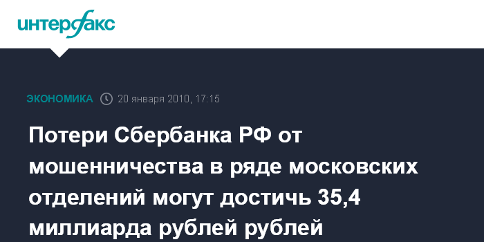 Потери Сбербанка РФ от мошенничества в ряде московских отделений могут достичь 35,4 миллиарда рублей рублей