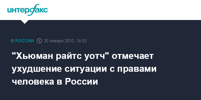 Вашингтон. 20 января. INTERFAX.RU - Международная организация "Хьюман райтс уотч" утверждает: ситуация с правами человека в России ухудшилась, и это резко контрастирует с заявлениями властей о важной роли гражданского общества.
