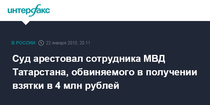 Суд арестовал сотрудника МВД Татарстана, обвиняемого в получении взятки в 4 млн рублей