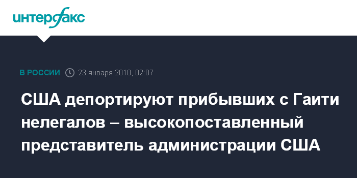 Лондон. 23 января. ИНТЕРФАКС - Министр национальной безопасности Соединенных штатов Джанет Наполитано заявила, что нелегалы с Гаити, прибывшие в США после недавнего разрушительного землетрясения в своей страны, будут депортированы обратно на родину.