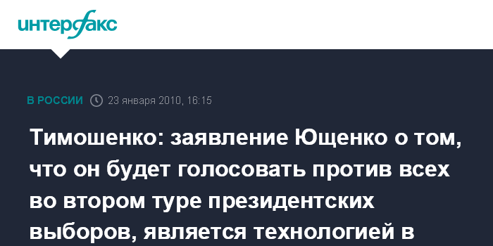 Тимошенко: заявление Ющенко о том, что он будет голосовать против всех во втором туре президентских выборов, является технологией в пользу Януковича