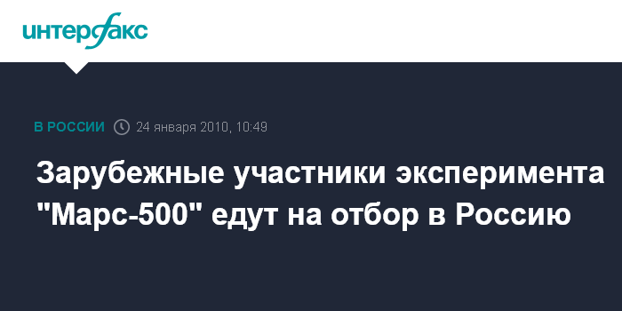 Зарубежные участники эксперимента "Марс-500" едут на отбор в Россию