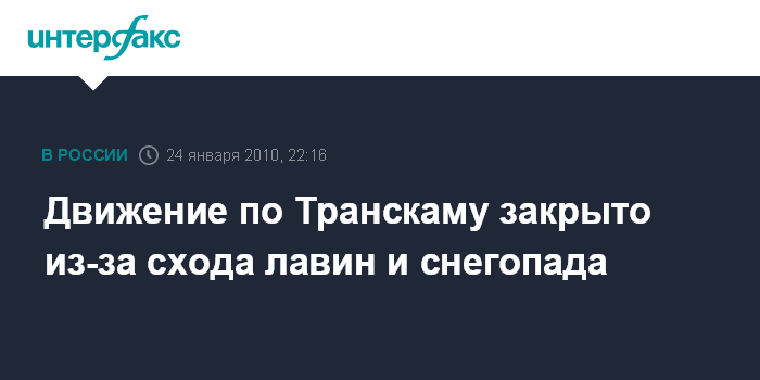 Владикавказ. 24 января. ИНТЕРФАКС-ЮГ - Транскавказская магистраль закрыта из-за схода снежных лавин, сообщили агентству "Интерфакс-Юг" в воскресенье в пресс-службе ГУ МЧС РФ по Северной Осетии.