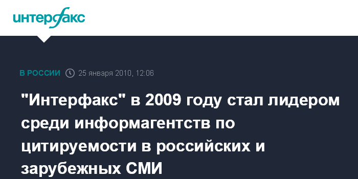 "Интерфакс" в 2009 году стал лидером среди информагентств по цитируемости в российских и зарубежных СМИ