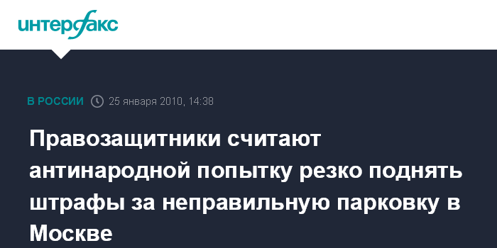 Москва. 25 января. INTERFAX.RU – Правозащитники бьют тревогу в связи с планами 15-кратного увеличения штрафа за неправильную парковку в Москве. "Это абсолютно антинародный законопроект", - заявил "Интерфаксу" в понедельник правозащитник и автомобилист, лидер движения "За права человека" Лев Пономарев.