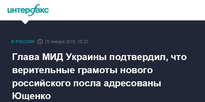 Глава МИД Украины подтвердил, что верительные грамоты нового российского посла адресованы Ющенко