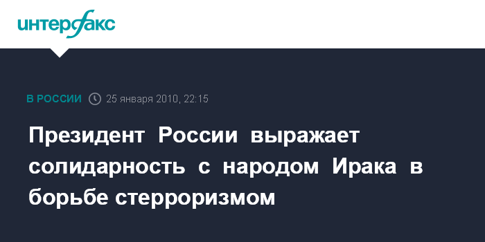Президент России выражает солидарность с народом Ирака в борьбе стерроризмом