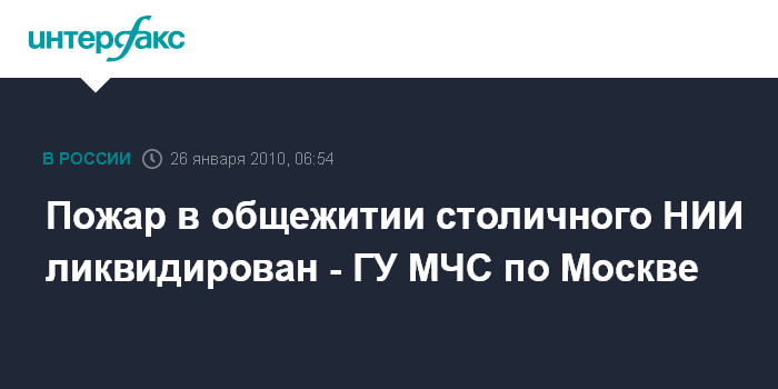Пожар в общежитии столичного НИИ ликвидирован - ГУ МЧС по Москве