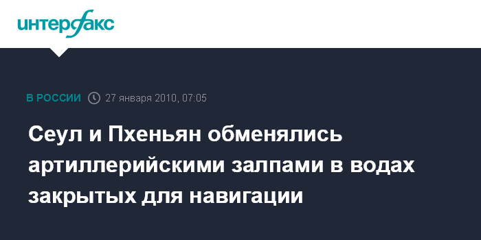 Сеул и Пхеньян обменялись артиллерийскими залпами в водах закрытых для навигации