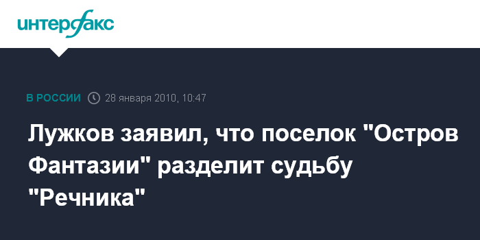 Лужков заявил, что поселок "Остров Фантазии" разделит судьбу "Речника"