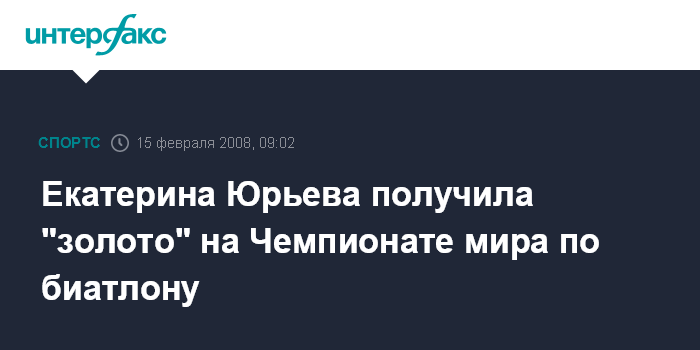 Пермь. 15 февраля. INTERFAX.RU - Воспитанница спортивной школы города Чайковский (Пермский край), биатлонистка Екатерина Юрьева стала победительницей в индивидуальной гонке на 15 километров на Чемпионате мира по биатлону в шведском Остерсунде.