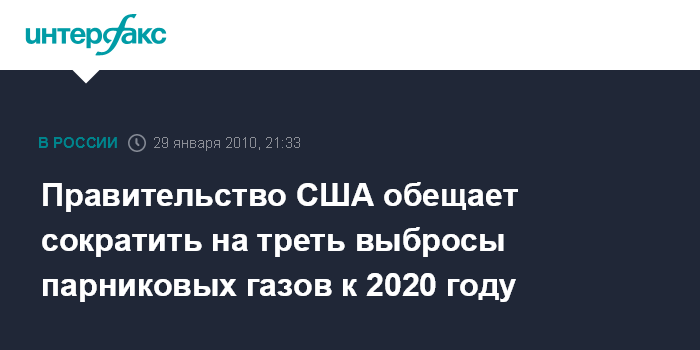 Правительство США обещает сократить на треть выбросы парниковых газов к 2020 году