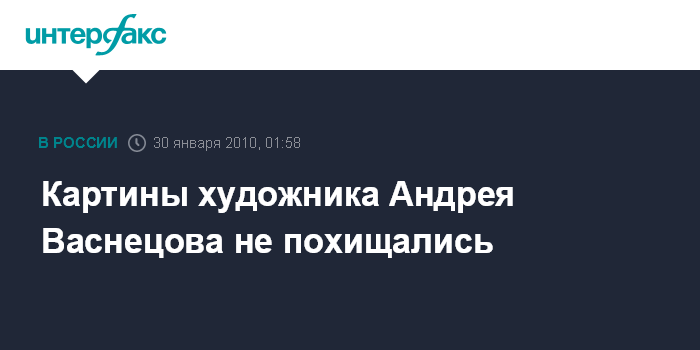 Москва. 30 января. ИНТЕРФАКС-МОСКВА - Заявление о краже картин, написанных внуком выдающегося русского художника Виктора Васнецова Андреем, не соответствует действительности.