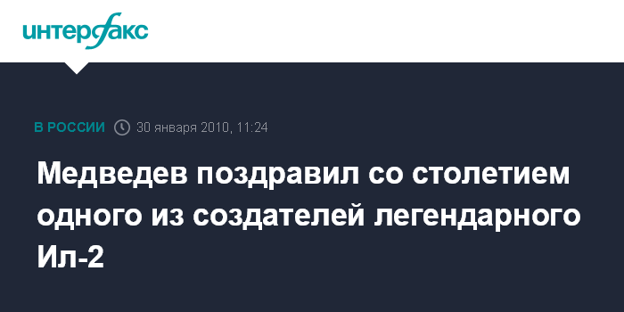 Медведев поздравил со столетием одного из создателей легендарного Ил-2