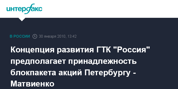 Концепция развития ГТК "Россия" предполагает принадлежность блокпакета акций Петербургу - Матвиенко