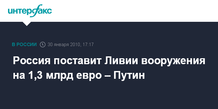 Россия поставит Ливии вооружения на 1,3 млрд евро – Путин