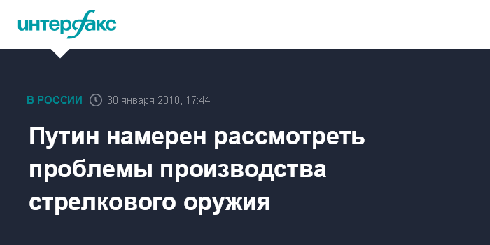 Путин намерен рассмотреть проблемы производства стрелкового оружия