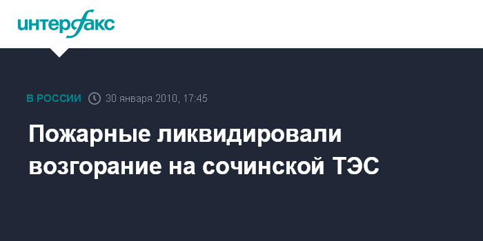 Сочи. 30 января. INTERFAX.RU - Пожар на сочинской тепловой электростанции полностью потушен, заявил агентству "Интерфакс-Юг" заместитель начальника управления МЧС РФ по Краснодарскому краю - руководитель сил МЧС в Сочи Николай Шустов. "На настоящий момент пожарные расчеты полностью завершили ликвидацию пожара. Идет обследование помещений сотрудниками пожарной службы и тепловой электростанции", - сказал Н.Шустов. По его словам, ЧП на ТЭС никоим образом на жизнедеятельность города, в том числе и на электроснабжение, не повлияет.