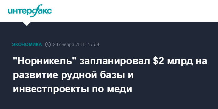 "Норникель" запланировал $2 млрд на развитие рудной базы и инвестпроекты по меди