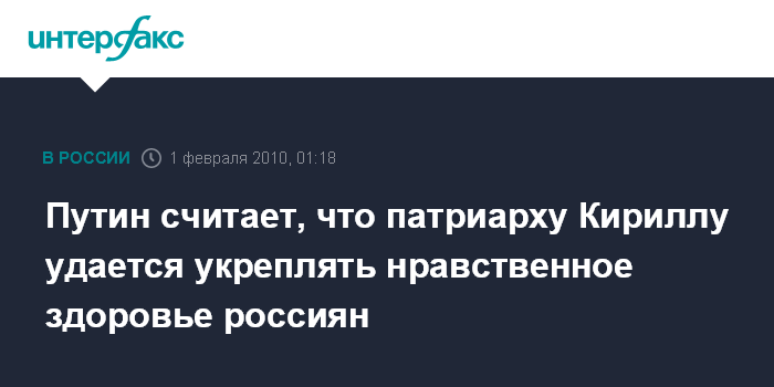 Путин считает, что патриарху Кириллу удается укреплять нравственное здоровье россиян