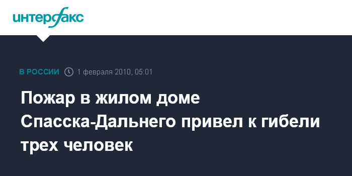 Пожар в жилом доме Спасска-Дальнего привел к гибели трех человек