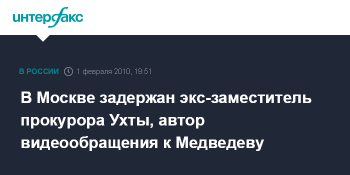 В Москве задержан экс-заместитель прокурора Ухты, автор видеообращения к Медведеву