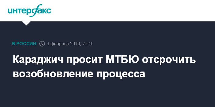 Гаага. 1 февраля. ИНТЕРФАКС - Бывший политический лидер боснийских сербов Радован Караджич в понедельник подал ходатайство в Международный уголовный трибунал по бывшей Югославии (МТБЮ) с просьбой отложить возобновление процесса, запланированное на 1 марта.