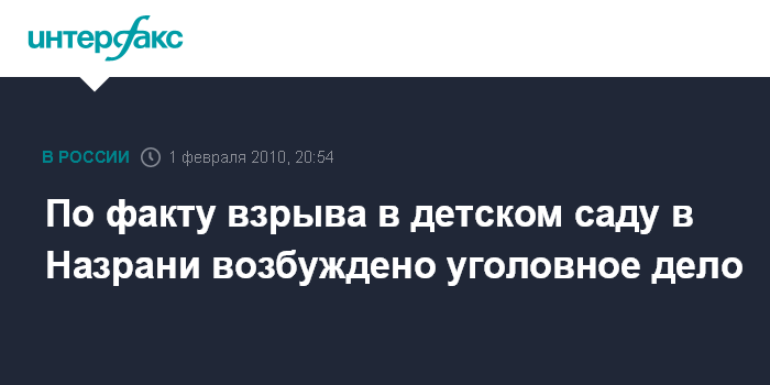 Назрань. 1 февраля. INTERFAX.RU - Уголовное дело возбуждено по факту взрыва на территории детского сада в Назрани, в результате которого пострадали шесть человек.