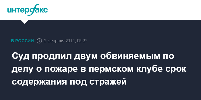 Суд продлил двум обвиняемым по делу о пожаре в пермском клубе срок содержания под стражей